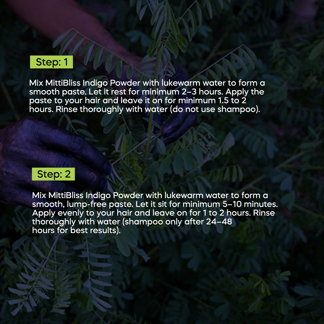 In 1 step process, we mix both Henna and Indigo together and use it as a common paste. Read below the steps for 1 step process in detail:
